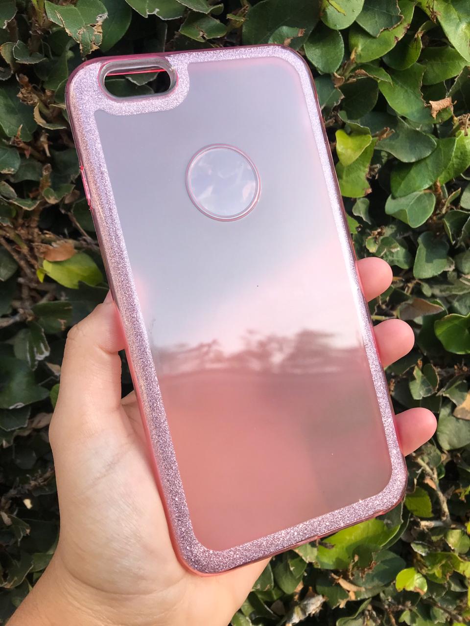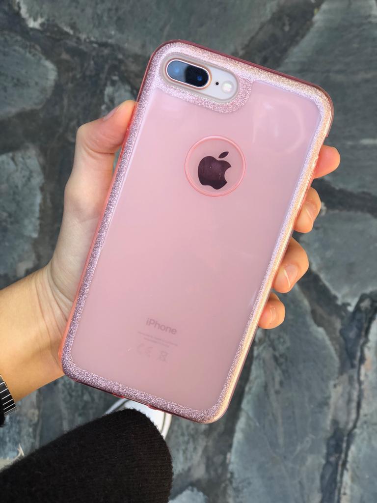 Funda con dorso rígido y brillos en los bordes.